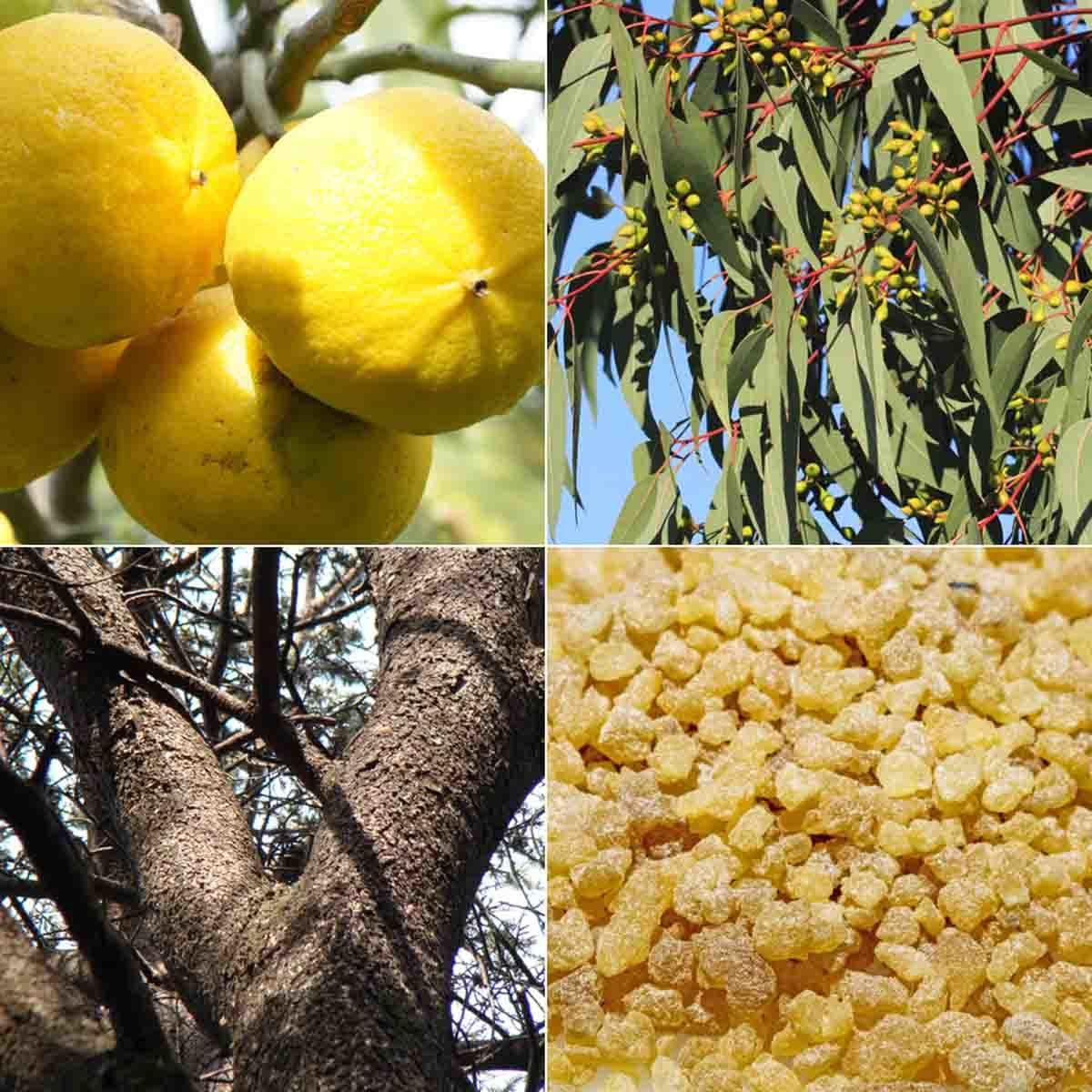 ベルガモットFCF精油、ユーカリラディアータ精油、シダーウッドアトラス精油、フランキンセンス精油、ペパーミント精油、ティートリー精油