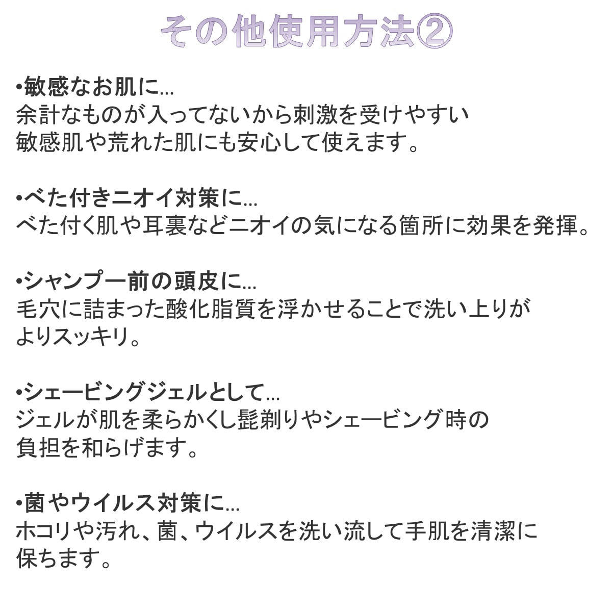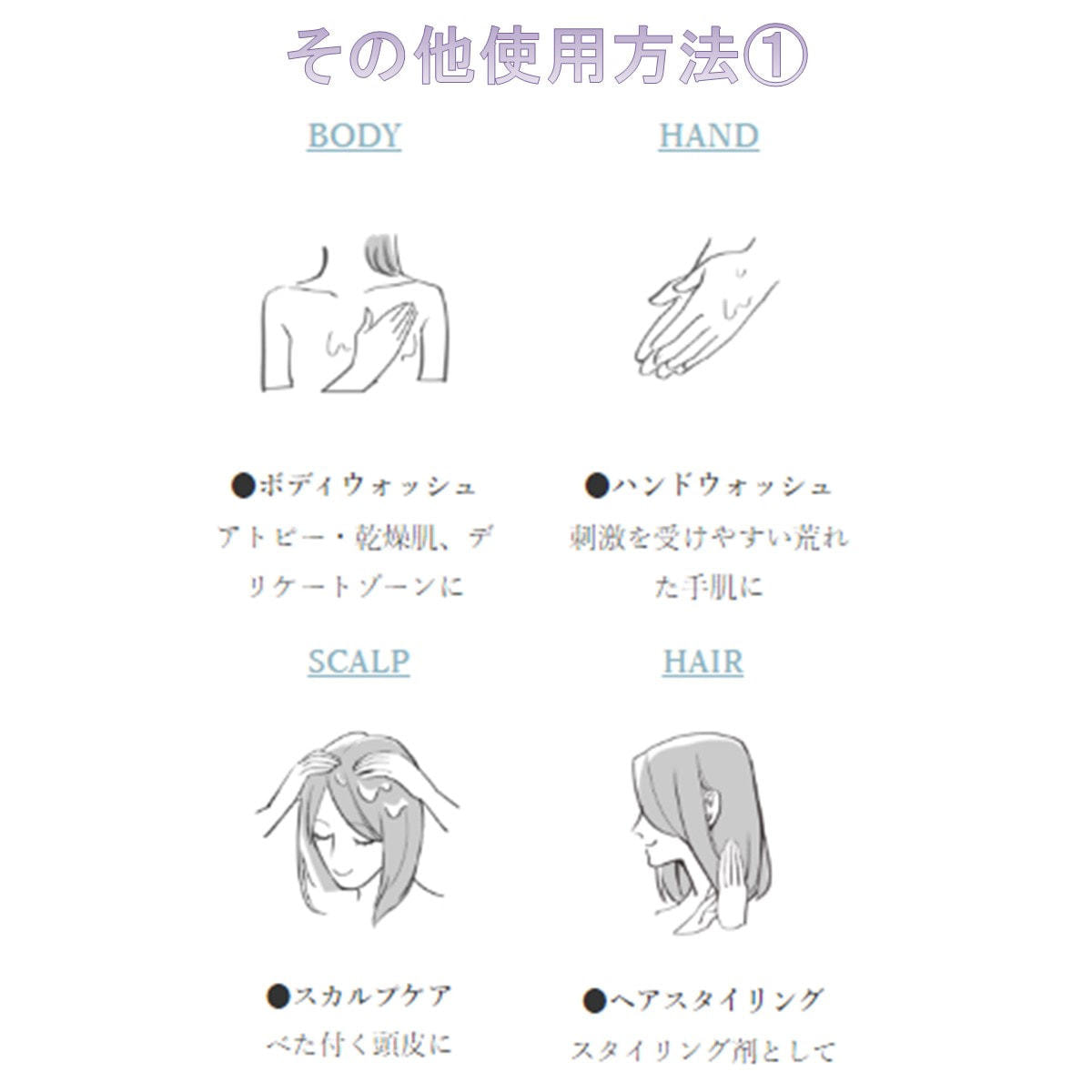 お顔、敏感な肌、頭皮、デリケートゾーンまで幅広くお使いいただけます。